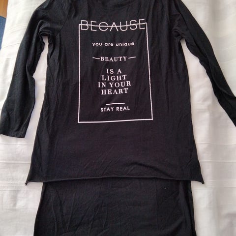 Juhlavampi lyhythihainen, koko M. Musta ja materiaaliltaan puuvillaa ja elastaania. Ihanan pehmeä kangas. V-pääntie ja yksityiskohta kaulalla. Sopii arkeen ja vapaa-aikaan.