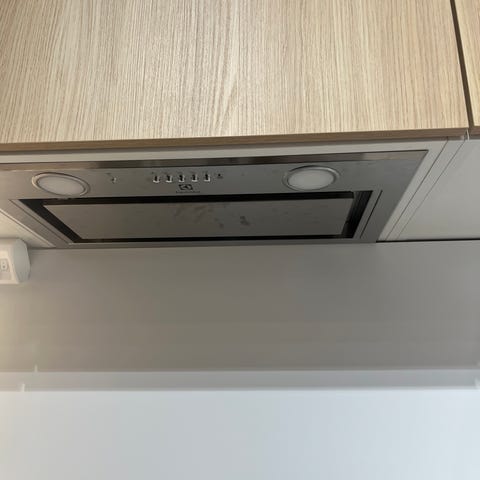 Käyttämätön esittelykeittiön liesikupu / liesituuletin.