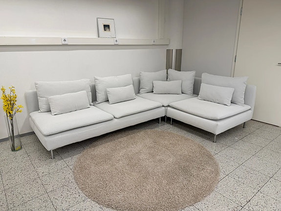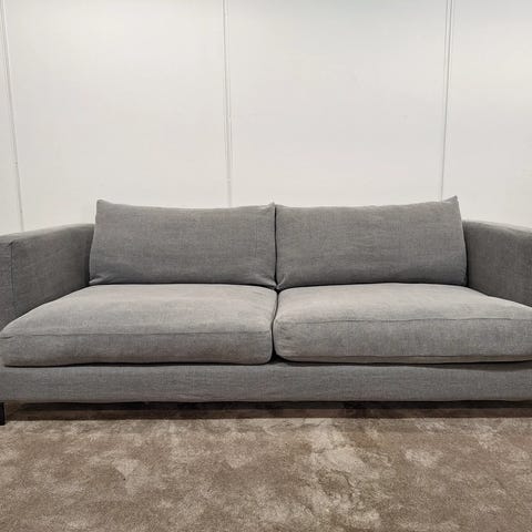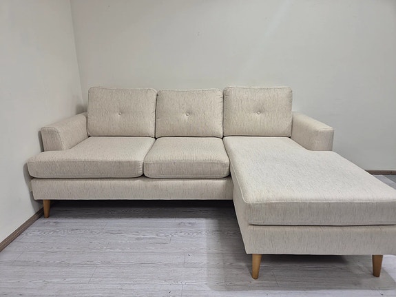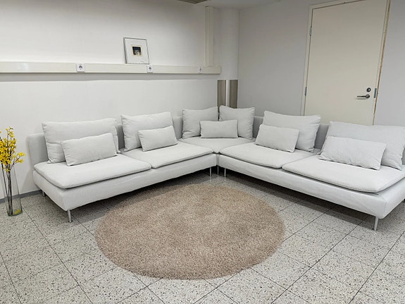 Sekä sohvan että tyynyjen päälliset on pesty ja puhdistettu (01.04.2026) ja ei käytetty sen jälkeen – sohva on siis heti käyttövalmis uudelle omistajalle.