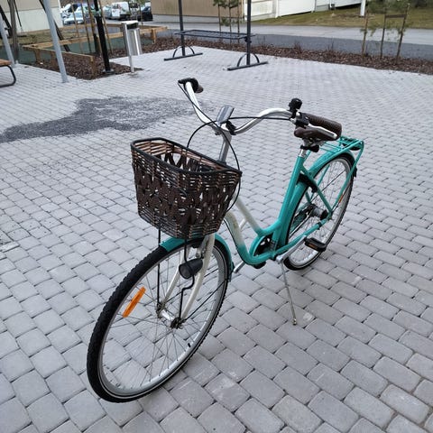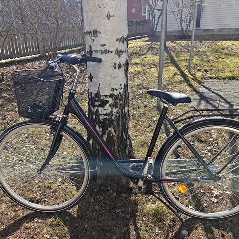 Pari vuotta sitten ostettu mutta käyttämättömäksi jäänyt naisten 28" 3-V Romet Angel-kaupunkipyörä. Pyörän säädöt yms. on tarkistettu pyöräliikkeessä ja siihen on lisätty eteen kori.