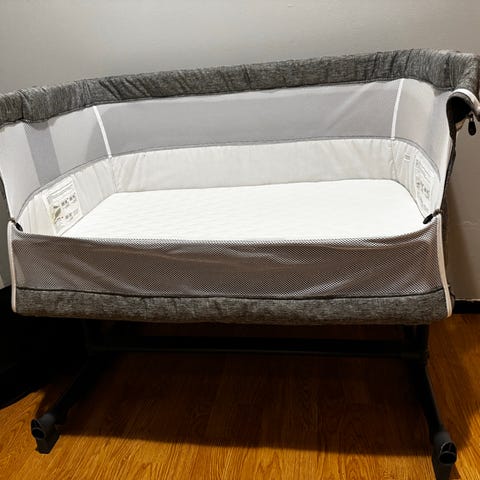 Myydään uutena Jollyroomista 09/25 ostettu sivuvaunusänky leikkikehällä. Sängyssä on avattava sivu sekä säädettävä korkeus, mahdollista säätää esim. päänpuoli korkeammaksi. Leikkikehää emme ole koskaan käyttäneet, toiminut vain vastasyntyneen sänkynä. Sänky on hyvässä kunnossa seuraavalle käyttäjälle.