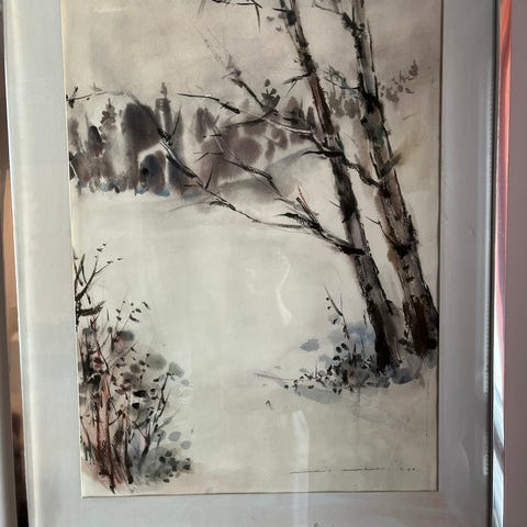 Helsinkiläisen valokuvaaja taiteijija jaskarin näkemys nuuksiolaisesta petäjästä. Sininen pastillivärinen tausta hopeiset kehykset. Sopii hyvin vaaleaan seinään rauhoittavia tunnelmia kaipaavalle vesiväritöitä arvostavalle. Koko n 70 x 85 cm