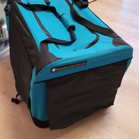 Kokoontaittuva kevythäkki, mitat 70x50x51, Hyvä käytetty kunto, ehjä. Väri vaalea mintunvihreä. Pesty.