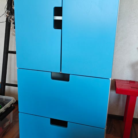 Levyistä tehty hyllykaappi. Hyllyjä 5 kpl. Oven kahvat eivät kuulu kauppaan.