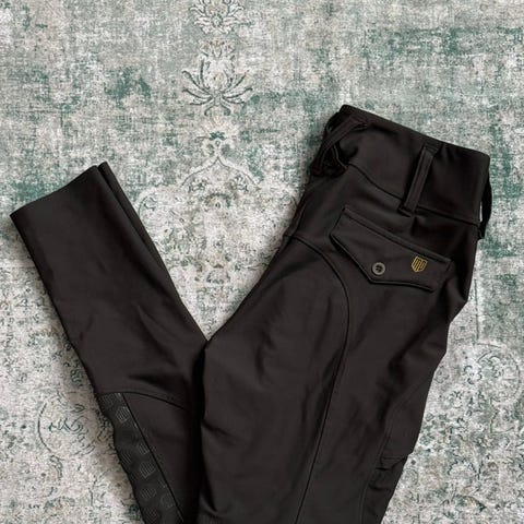 Maya Delorez ratsastushousut koossa S. Housut ovat vihreät ja niissä on kokogrippipaikat, jotka parantavat pitoa satulassa. Joustava materiaali ja korkea vyötärö tarjoavat liikkumavapautta ratsastukseen. Housuissa on taskuja sivuilla ja takana pikkutavaroiden säilyttämiseen. Soveltuvat ratsastukseen ja tallikäyttöön.