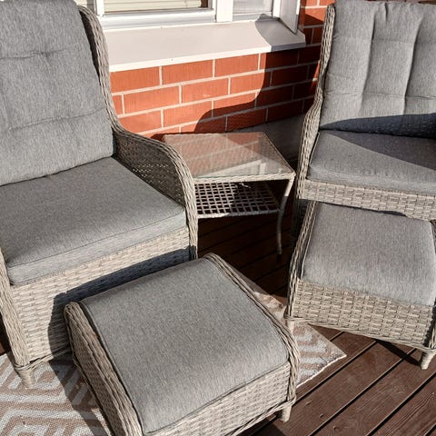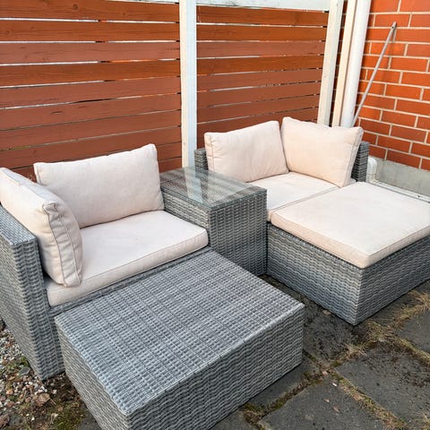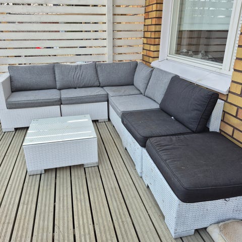 Käytetty, mutta hyvin toimiva sohva ulkokäyttöön. Ikean nämmarö mallistoa. Pakettiin kuuluu yksi selkänojallinen ja yksi ilman selkänojaa runko sekä tumman harmaat päälliset ja selkätyynyt. Rungot tarvitsevat hellää hoitoa, mutta päälliset ovat oikein hyvässä kunnossa.