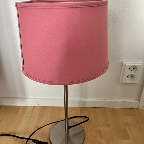Varjostin Ikeasta, jalasta ei tietoa mistä on ostettu. Jonkin näköistä metallia. Lamppu kanta E14.