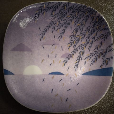 Tämä lautanen on valmistettu aikanaan yhteistyössä Suomen Punaisen Ristin (SPR) kanssa. Takana on Arabian leima, kuvittajan signeeraus sekä SPR:n punainen risti -logo. Lautasessa on valmiina ripustuslenkki seinälle asettamista varten.