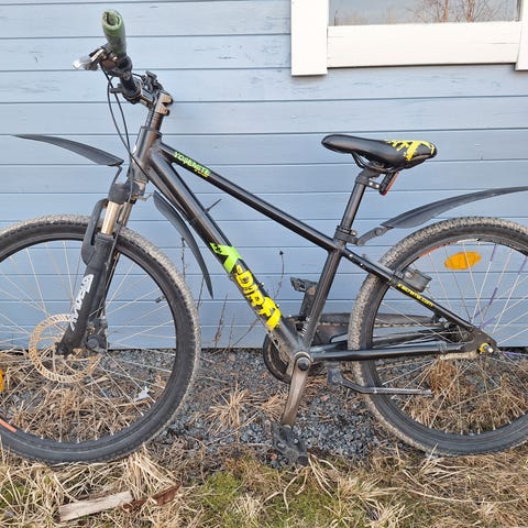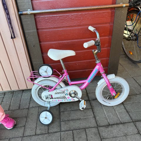 Ehjä ja hyväkuntoinen pyörä(etujarru vinkuu mutta toimii). Kaksi kesää ajettu. Nyt uuden ja isomman tieltä pois. Apupyörät saa mukaan.