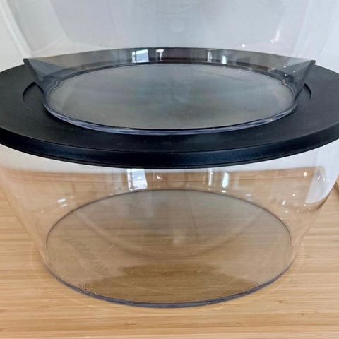 Myydään kolme Tupperware One Touch -kirkaskulhoa sinisellä kannella.