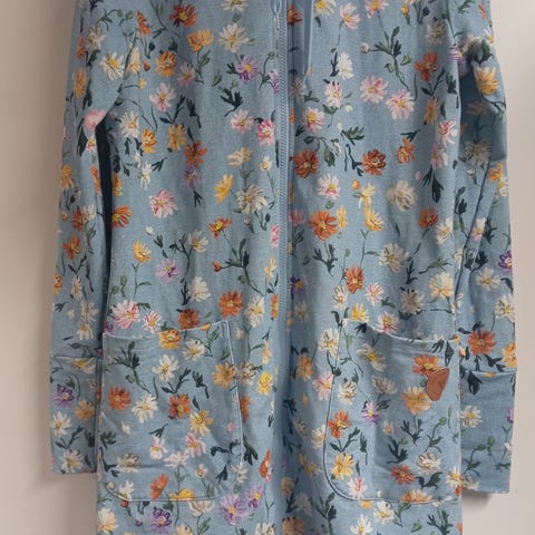 Myydään niin kaunis kukallinen Versonpuodin jemmatakki koossa L. Nouto Humppilasta tai postitus, postimaksu lisätään hintaan.