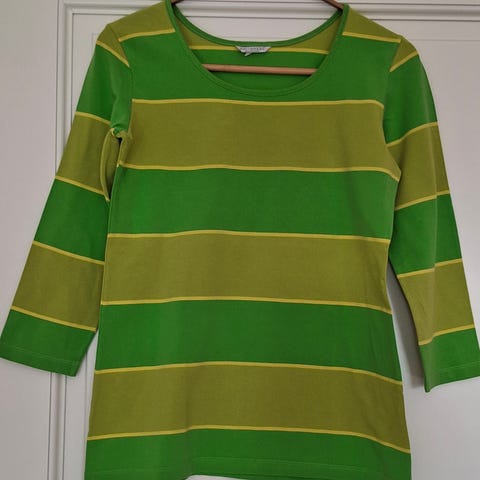 Marimekon vihreä raitapaita. Koko M. Puolipitkät hihat. 100% puuvillaa. Saa tarjota.
