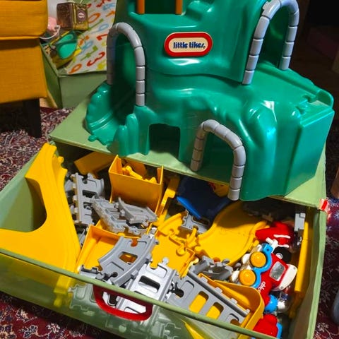 Puinen kassattava, perässävedettävä juna. Pattereiden vaihtoa kaipaa, jos haluat äänet kuuluviin. Myös pari junavaunujen "tikuista" kaipaa liimaa pysyäkseen paikoillaan.