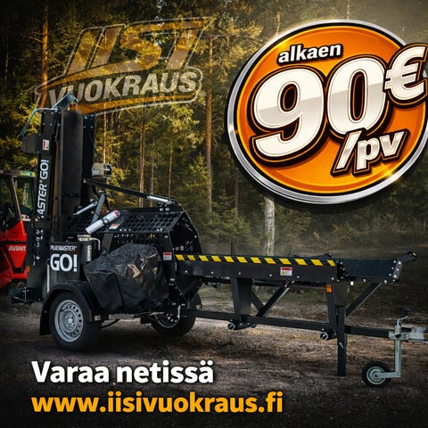 Vuokrataan tehokas klapikone, pilkemaster go mobiili omalla polttomoottorilla ja hydraulinen puunnostin.