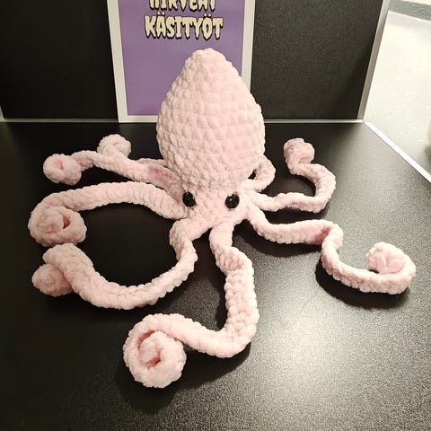 Käsintehty hämähäkki. Hämähäkin tekemiseen on kulunut aikaa 5h. Hämähäkki on valmistettu puuvilla langasta.
