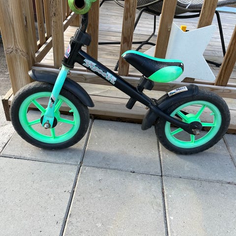 Jupiter potkupyörä, jossa 10" renkaat. Rungon ja haarukan väri on musta, tehosteet ja lokasuojat oranssit. Satula ja ohjaustanko ovat säädettävät perusmalleja. Potkupyörä soveltuu pienille lapsille tasapainon ja ajotaidon harjoitteluun. Pyörässä on umpikumirenkaat ja matala runko helpottamassa kyytiin nousua ja sieltä laskeutumista. Vain nouto.