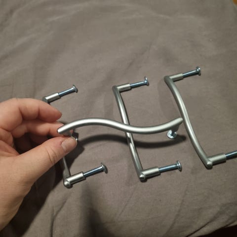 Myydään metallinväriset kaappien vetimet uusien alta pois.