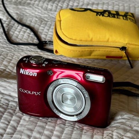 Nikon P340 + muistikortti 8 GB, litiuakku, verkkovirtalaturi, USB-kaapeli. Käytön jälkiä, mutta kunto hyvä.