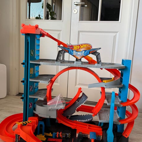 Hot Wheels Ultimate Garage autorata ja parkkitalo. Monitasoinen leikkisetti, jossa useita ajoratoja ja ramppiosuuksia pienille metalliautoille. Rakennelmassa on useampi kerros pysäköintipaikkoja sekä keskiosassa dinosaurus-teemainen elementti. Soveltuu Hot Wheels -autoille ja vastaaville pienoismalleille sisäleikkeihin.