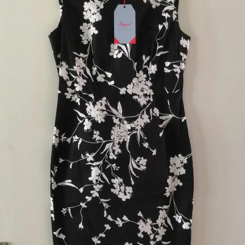 Ei kokomerkintää, mutta mekko menee ainakin kokoon M asti ja ehkä L kokoa käyttävälle myös riippuen siitä, miten väljästi sen haluaa istuvan. Tarkista mitat: rinnanympärys n. 110 cm, vyötärö n. 115 cm, lantio n. 118 cm, hartiat n. 43,5 cm, hiha n. 58 cm, pituus niskasta helmaan n. 138 cm.