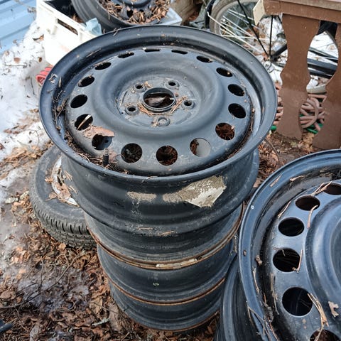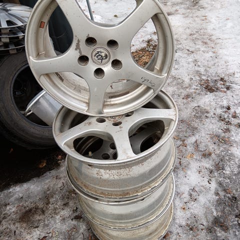 Yhden kesän ajetut vanteet ja Bridgestonen kumet, pintaa 7mm. Vanteet suorat ja ei jälkiä.