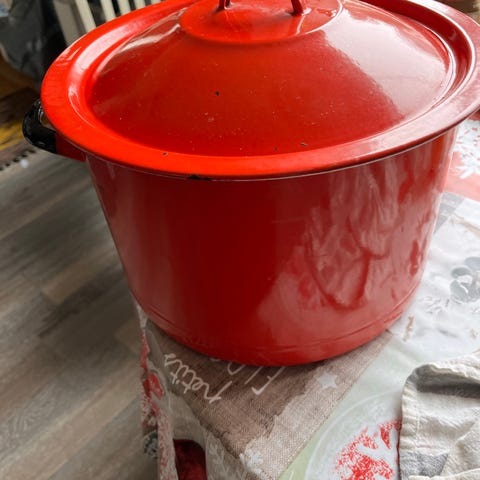 Matti & Maija kattila, ulkopuolelta punainen ja sisältä vaalea. Kattilassa on pitkä musta kahva. Soveltuu yleiseen ruoanlaittoon esimerkiksi keittojen, kastikkeiden ja puuron valmistukseen. Materiaalina emaloitu metalli tai vastaava pinnoitettu metalli.