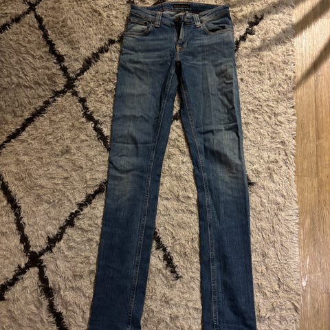 Nudie Jeans farkut miehille. Väri harmaa ja materiaali denim. Koko on merkitty W34 ja pituus vastaa noin L-kokoa. Perinteinen viisitaskumalli, vetoketju- ja nappikiinnitys edessä. Sopivat arkikäyttöön ja yhdisteltäväksi erilaisten yläosien kanssa.