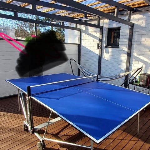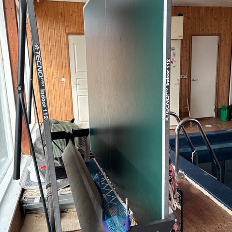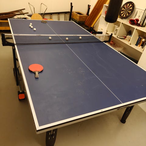 Sininen Ping Pong pöytä, ostettu Aconilta. Ulkokäyttöön. Tectonic. Hyvä pinta. Verkko on uusi. Mahdollista laittaa kiinni ja renkailla siirtää helposti. Joku ruuvi lähtenyt, tarvittaessa voi fiksata mutta ei vaikuta pelaamiseen. Avaaminen yhdestä kohdasta hieman haastavampi, mutta se onnistuu kuitenkin.