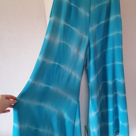 Mittoja: vyötärö 2 x 38 cm, pituus 76 cm, helman leveys 2 x 55 cm