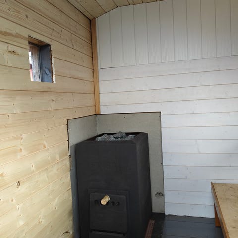 Siirrettävissä oleva Saunamökki. 20 neliötä ja Narvia vähän käytetty puukiuas. Sauna+Pukuhuone+Kuisti.