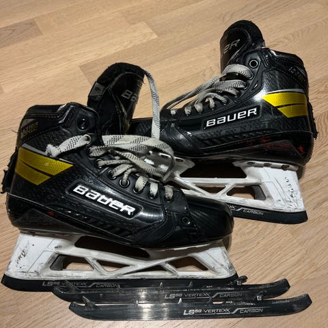 Bauer Supreme UltraSonic maalivahdinluistimet, koko 6, leveä EE-lesti. Käytönjälkiä löytyy mutta täysin ehjät. Terät LS5G Vertexx Carbon.