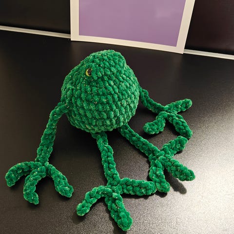 Käsin virkattuja sammakoita eri väreissä ja erilaisilla naamoilla. Pehmoisia pikkukamuja 🐸💚 Ei irtoavia osia.