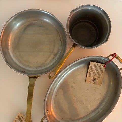 Kuparikasari hinta 12e, Kuparipannu hinta 18e.
