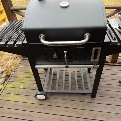 Kaksi kesää käytetty, et ei oo uus, mut toimiva grilli eteenpäin. Tänä keväänä kerran käytetty, kun kalan savustin.