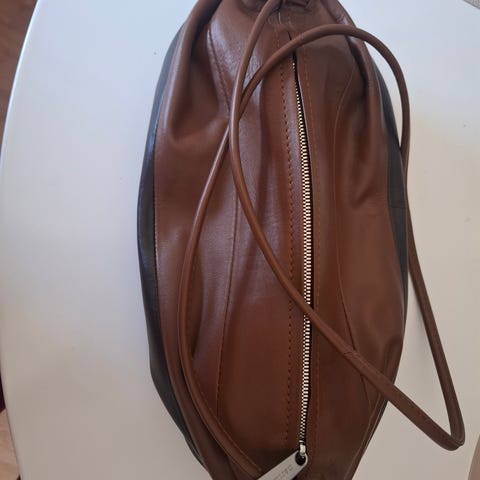 Kaunis vanhempaa mallistoa oleva kultainen/ pronssinen Karla laukku. Metalliväri patinoitunut / kulunut paikoittain, erityisesti hihnasta ja vetoketjun läheltä. Yleisilme hyvä edelleen. Isompi malli.