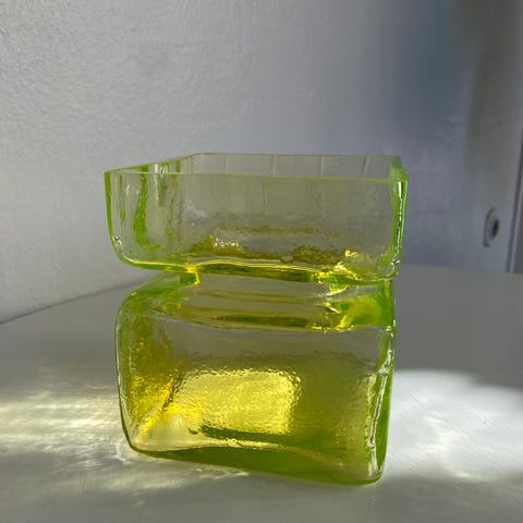 Helena Tynellin kaunis taidelasimaljakko. Pieni lohkeama maljakon suulla, kuten kuvasta näkyy, muuten erinomainen kunto.