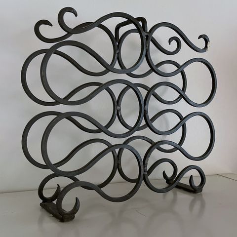 Tyylikäs roikkuva pulloteline. Takorautaa.