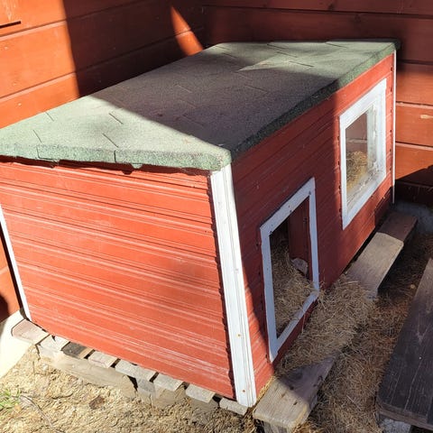Hyvässä kunnossa oleva koiran koppi. Tehty pari vuotta sitten, mutta koira ei sitä käyttänyt. Rutirexit saa mukaan.
