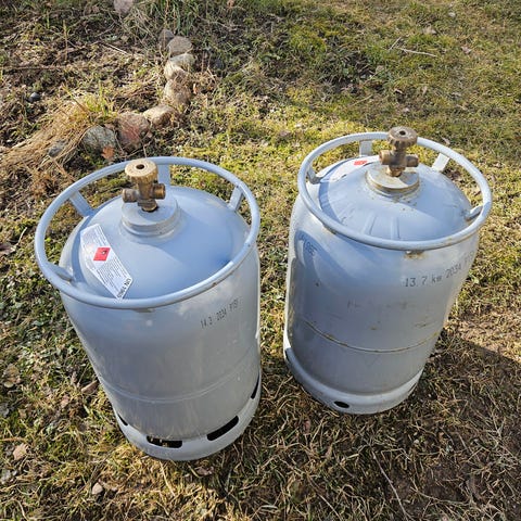 Tyhjä. Voi vaihtaa täyteen monessa kaasunmyyntipisteessä (mm. Aga, Abc-asemat...)