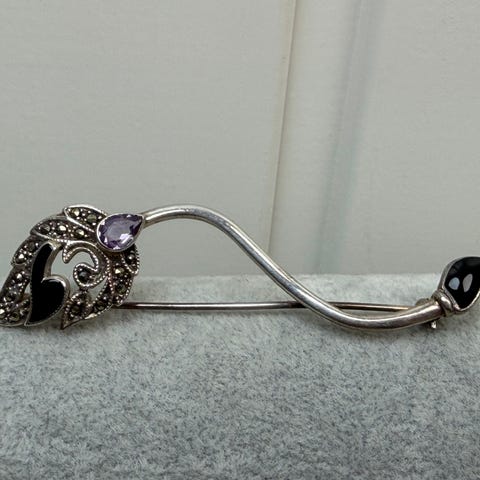 Hyvin vanha art Deco hopea riipus helmellä ja markasiiteillä. Kaikki pienet kivet tallella.