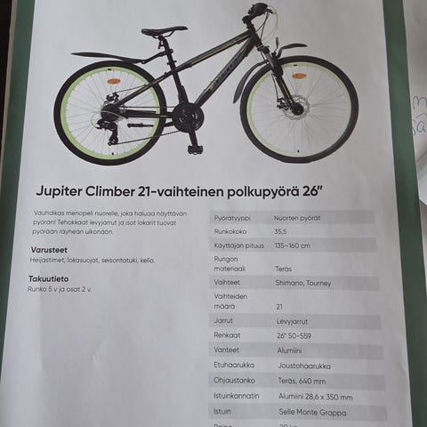 Pyörä on kuin uusi, ajettu tosi vähän. Pyörää säilytetty aina lämpimässä varastossa. Ei ruostumista tai kulumia.