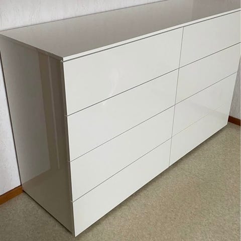 Myydään kaksi erillistä lipastoa. Lasilevyt jossa toisessa halkeama mutta ei tunnu pinnasta. Korkeakiiltopinta ovissa. Lipastot yh. 139 cm, syvyys, korkeus 88cm, syvyys 44 cm. Kunto erittäin hyvä muuten lukuunottamatta sisäistä kulmahalkeamaa joka ei tunnu pinnasta.