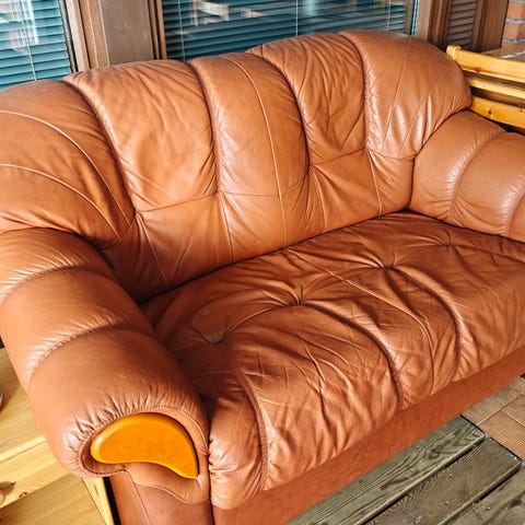 Käytöstä lähtee muuton tieltä nahkasohvat ja pöytä. Käytönjälkiä näkyy, mutta kiva nuissa oli pötkötellä ja telkkua katella.