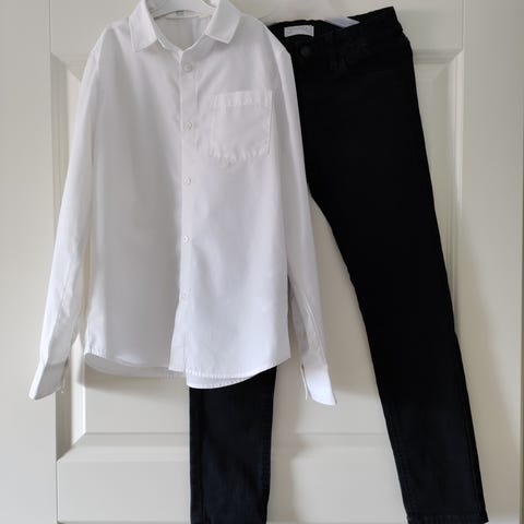 Valkoinen yhdet juhlat lapsen päällä ollut kauluspaita, uudenveroinen (säilytyksestä rypyssä) koko 134cm.