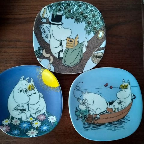 Kuvassa oleva Arabian Muumi lautanen, jossa sinisävyinen kuvitus. Lautasen etupuolella on Muumi-aiheinen kuva ja takapuolella Arabia Finland -leima. Nouto tai postitus. Kulkeutuu myös Turkuun omien menojen mukaan.