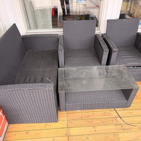 Polyrottinki terassikalustesetti pöytä ja 2 tuolia mustaharmaa