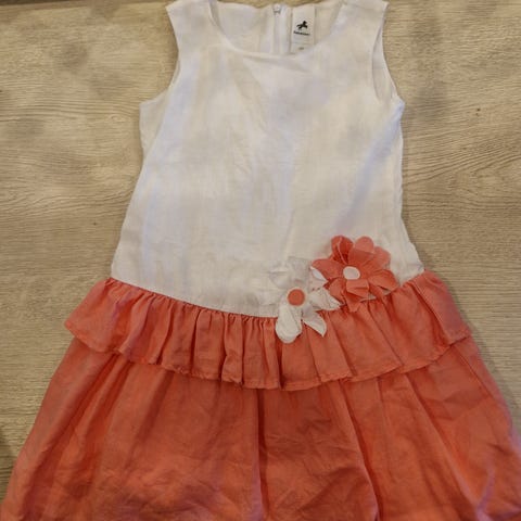 H&M mekko tytöille, koko 122. Hihaton malli, vaaleanpunainen väri. Materiaalina 55% pellava, 45% puuvilla. Helmassa kukkakirjailuja. Kesämekko juhlamekko