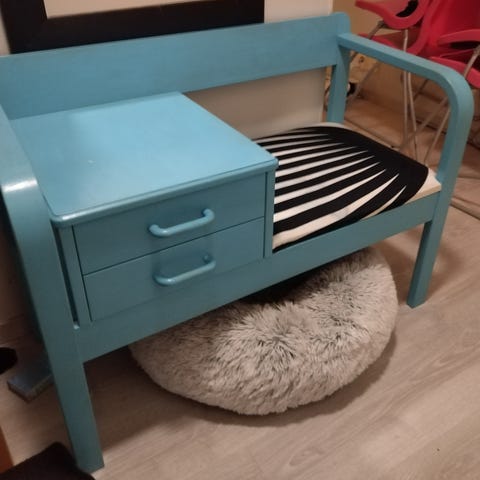 Teak-puhelinpöytä. Pinnassa kulumajälkiä. Vain nouto.
