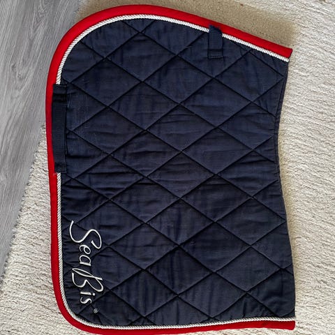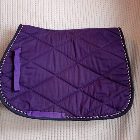 valkoinen satulahuopa full. Sisäpuolella jotain likaa, ulkopuolelta ihan siisti.