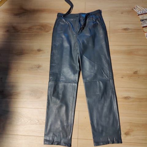 Mustat hyväkuntoiset nahkaiset moottoripyörä-housut. Koko arviolta M.